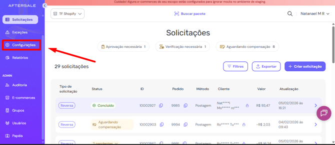 No entanto, é necessário certificar-se de que, nas configurações, o retorno para a loja de origem esteja habilitado. Para verificar essa configuração, siga o caminho abaixo: