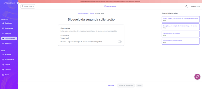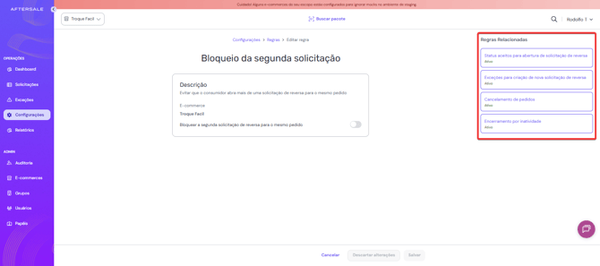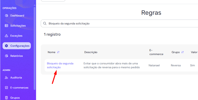 Este artigo explica a regra “Bloqueio da segunda solicitação”, uma configuração que impede que o consumidor abra mais de uma solicitação de reversa para o mesmo pedido.
