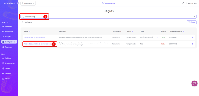 Buscar pela regra de aprovação automática de compensações