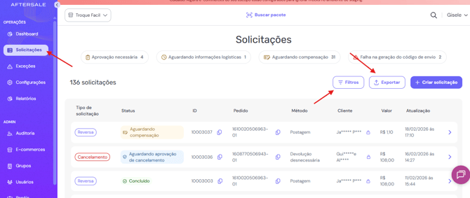 Este artigo orienta como realizar a exportação de relatórios. A exportação é feita com base nos filtros aplicados na tela de Solicitações, permitindo extrair os dados conforme a necessidade da operação.