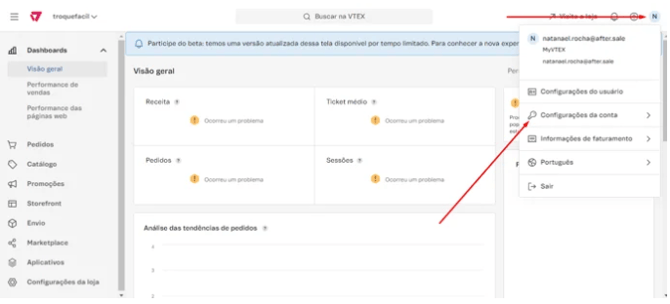Etapa 1 – Acessar as Configurações da Conta na VTEX