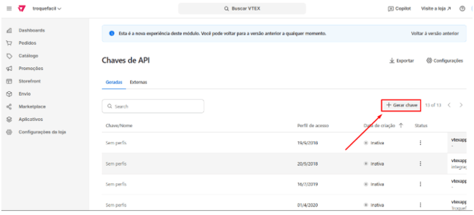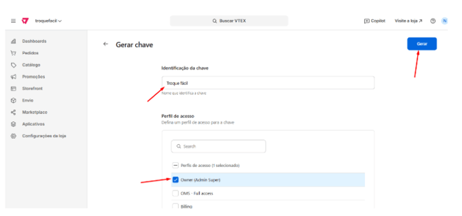 Este artigo explica como gerar as credenciais na VTEX e realizar a integração com o Troque Fácil, utilizando prints ilustrativos em cada etapa para facilitar o processo.