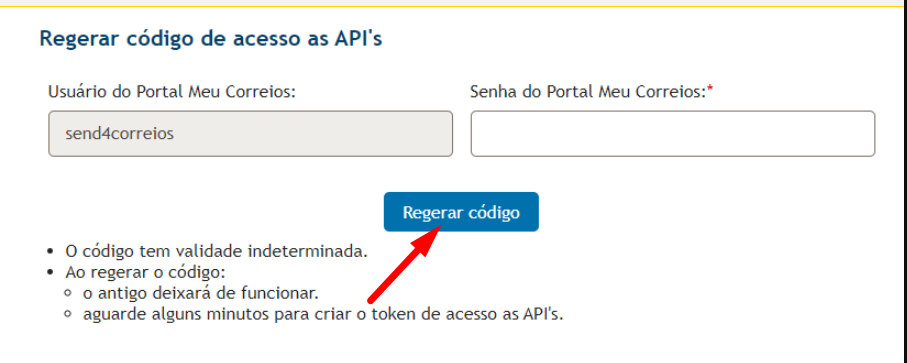 Caso não possua ou não se recorde da senha do portal Meu Correios(token de 40 carcaters da API):