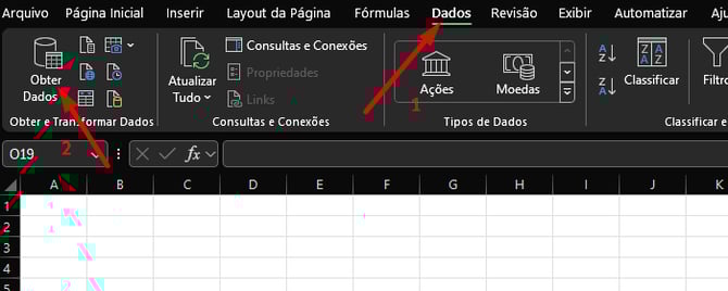 Clique em Dados > Obter Dados > De Arquivo > De Text/CSV.